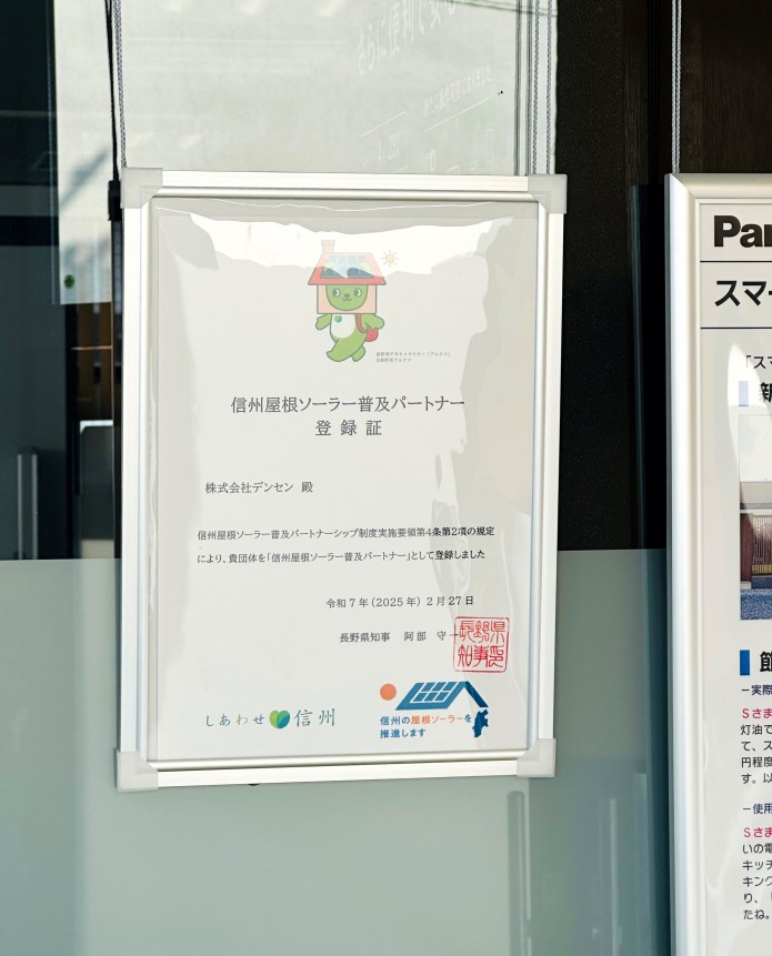 弊社は 屋根ソーラーの普及を通じて、ゼロカーボンをめざす取組に協力する企業として長野県に登録されています。